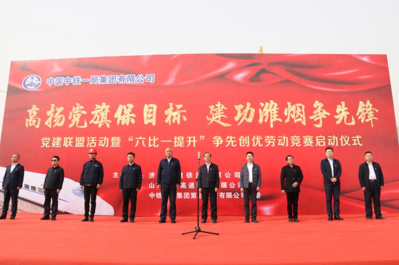仪式上,集团工会主席张庆星在讲话中对中铁一局潍烟4标的工作给予了肯定,希望潍烟4标以此次劳动竞赛为契机,再接再厉,进一步强化安全质量管理,细化工程节点目标,切实做到干在实处、走在前列,以党建为统领,以劳动竞赛为抓手,发挥央企标杆作用,以高质量党建促进潍烟高铁高质高效建设。