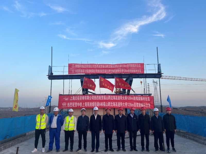 该连续梁跨越沈海高速公路,为潍烟铁路全线最大跨度连续梁,主跨128米、边跨72米,采用悬臂浇筑法施工,每个主墩共分17个标准节段,梁部全长273.7米,属于重点控制性工程,施工组织难度大、安全风险高。公司相关部门、烟台站改现场指挥部与施工、监理、设计等参建单位超前谋划,分析安全质量控制重点,研究施工组织安排,制定应急保障措施,在各参建单位的共同努力下,用时约8个月施工时间完成了该联连续梁的生产任务,后期架梁及无砟轨道推进提供了保障,