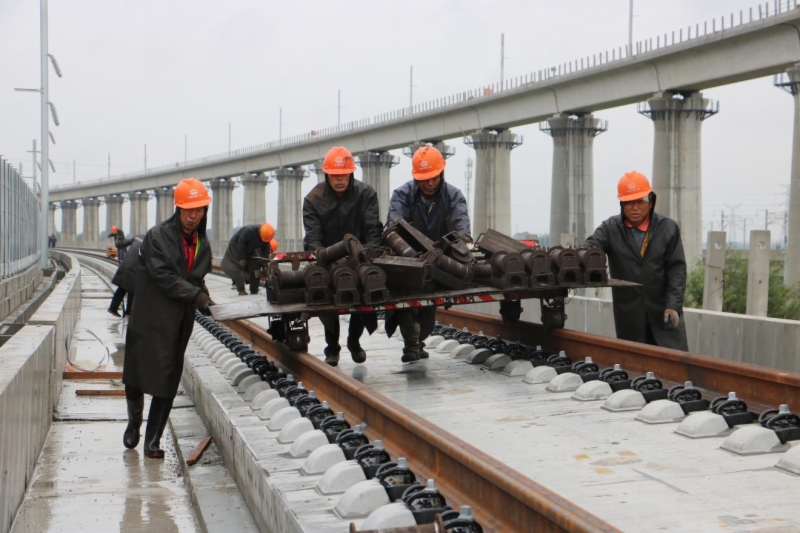 为确保铺轨任务顺利进行,伟德国际victor1946潍烟高铁公司精心组织,各参建单位紧密配合,铺轨施工单位中铁一局克服邻近营业线施工安全风险高、穿越龙烟线运输距离长、上跨潍莱线“天窗点”作业有限空间及线下施工条件限制等诸多困难和挑战,开展昼夜双班施工,全体人员以“保竣工 促进度 筑精品”劳动竞赛活动为契机,战高温、冒骤雨、抢工期,大干60天,提前完成双线340铺轨公里施工任务,创造了单日双班铺轨12.5公里的“潍烟速度”。