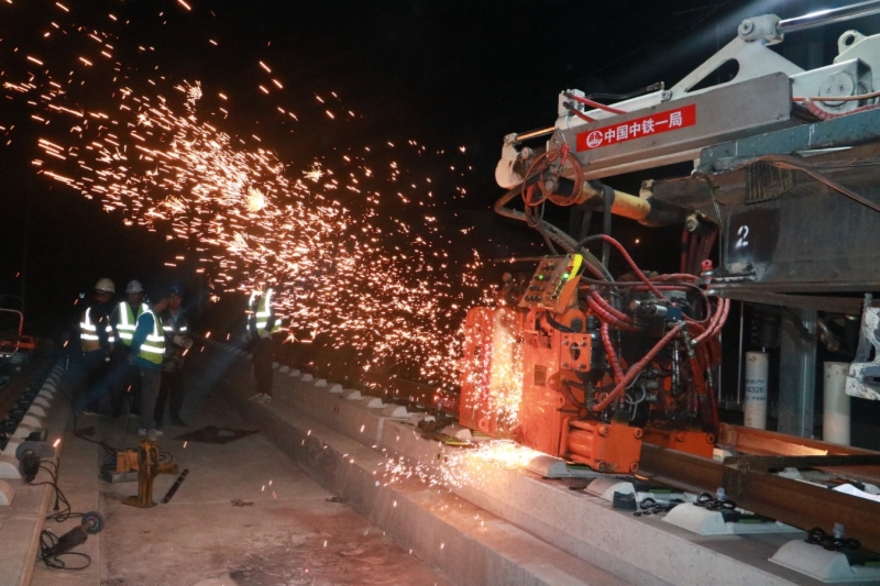为全面提高轨道锁定质量和安全管理水平,中铁一局投入使用了国内先进的UN150ZB1大型移动闪光焊轨机、中频数控电正火机、焊头精磨机等自动化工装设备和新技术,实现了焊轨施工智能化、信息化、专业化和绿色化,大幅提升了轨道质量,确保后期线路运行的平稳性和旅客乘坐舒适度。