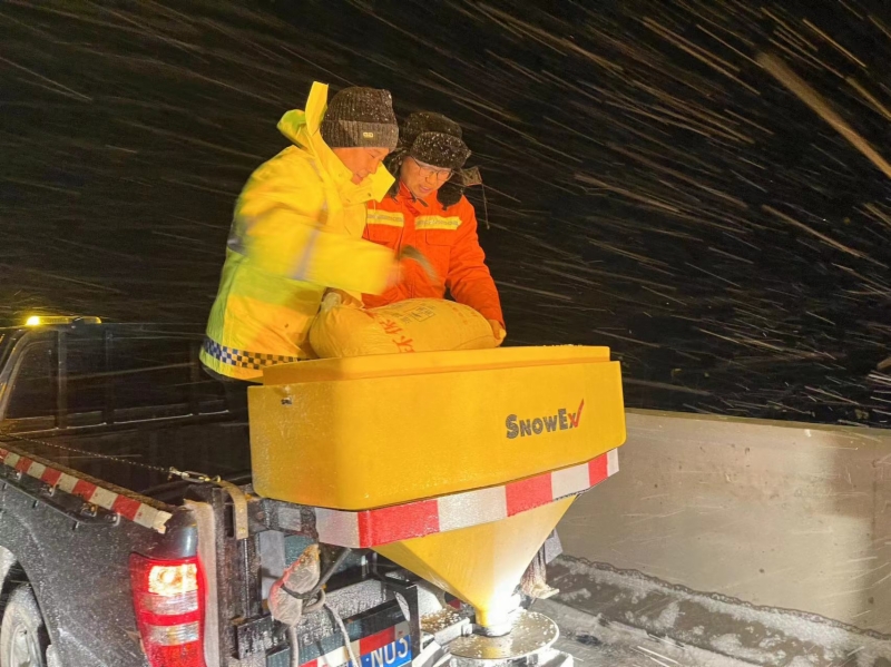 本次除雪防滑保畅共出动人员70余人次,融雪剂撒布车、铲雪车、保障巡查车等机械设备26台次,撒布融雪剂6吨,保证了除雪应对工作快速有序推进。