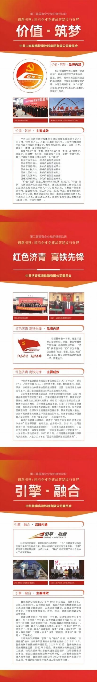 本次登台亮相的优秀党建品牌有10个来自省属一级企业,集团党委“价值·筑梦”党建品牌光荣上榜。同时入围的还有济青高铁公司“红色济青 高铁先锋”党建品牌和鲁南高铁公司“引擎·融合”党建品牌,较好体现了集团党建品牌创建工作成效。